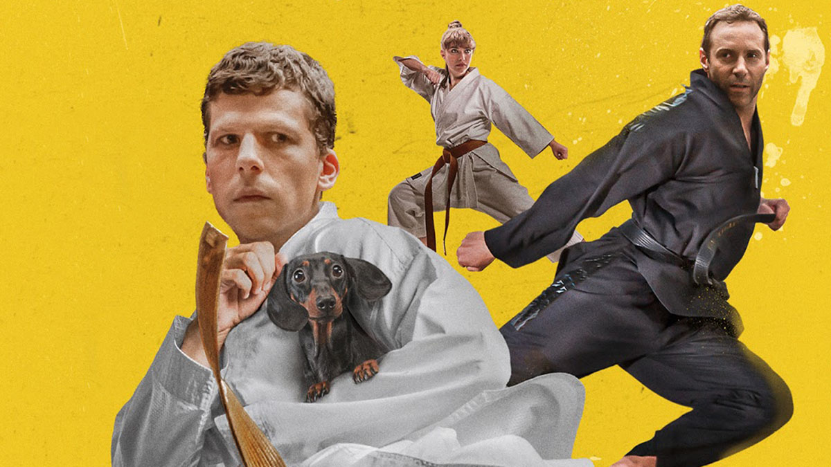 O que esperar de uma produção cujo cartaz tem um homem lutando karatê com um pequeno cão na mão? O próprio pôster do filme A Arte da Autodefesa (The Art of Self-Defense) já indica que estamos diante de uma comédia pastelão. Estrelado por Jesse Eisenberg, visto frequentemente neste tipo de obra, como a franquia Zumbilândia e 30 Minutos ou Menos, por exemplo, é uma produção das mais divertidas.