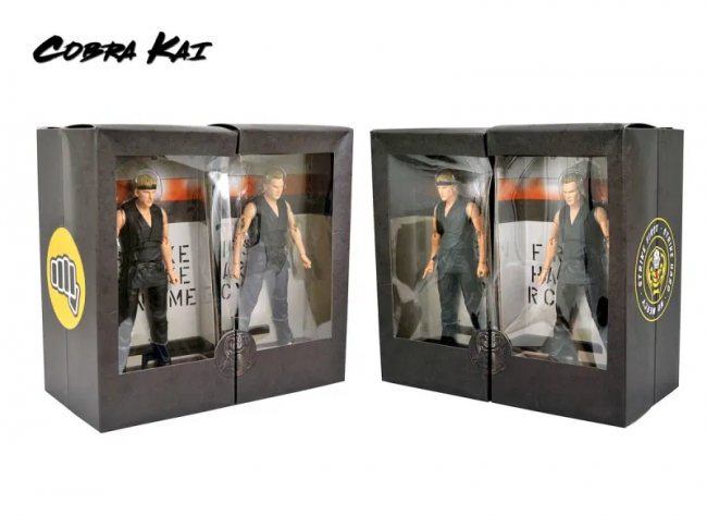 Os fãs da série da Netflix poderão adquirir as figuras de ação dos personagens Johnny Lawrence, John Kreese e Daniel LaRusso. Cada um deles vêm com mãos intercambiáveis e cenários, e a caixa vem embalada com uma capa protetora. Os itens são fabricados pela Diamond Select Toys e vendidos por 75 dólares.
